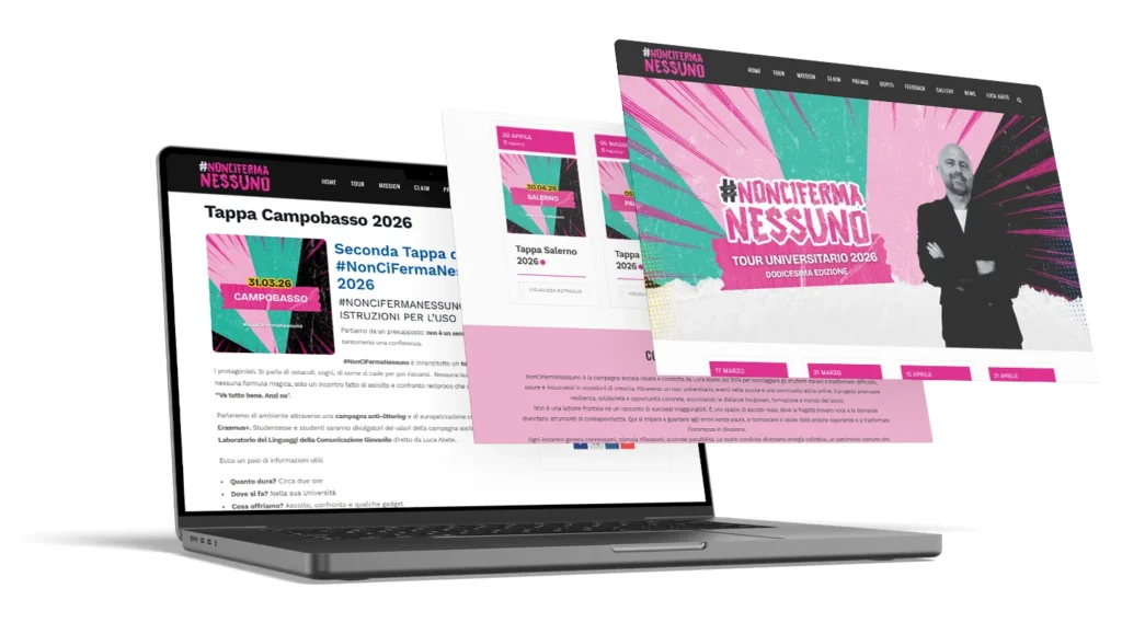 Abbiamo ottimizzato il sito di Non Ci Ferma Nessuno migliorandone navigazione, design e performance. L’header è stato riprogettato per rendere l’esperienza più chiara e immediata, mentre la palette colori è stata resa dinamica per adattarsi alle diverse edizioni dell’evento. A livello tecnico, il sito è stato alleggerito eliminando oltre 30 plugin a favore di codice custom, aumentando velocità e stabilità. Sono stati inoltre migliorati la homepage e il calendario delle tappe, rendendo le informazioni più accessibili.